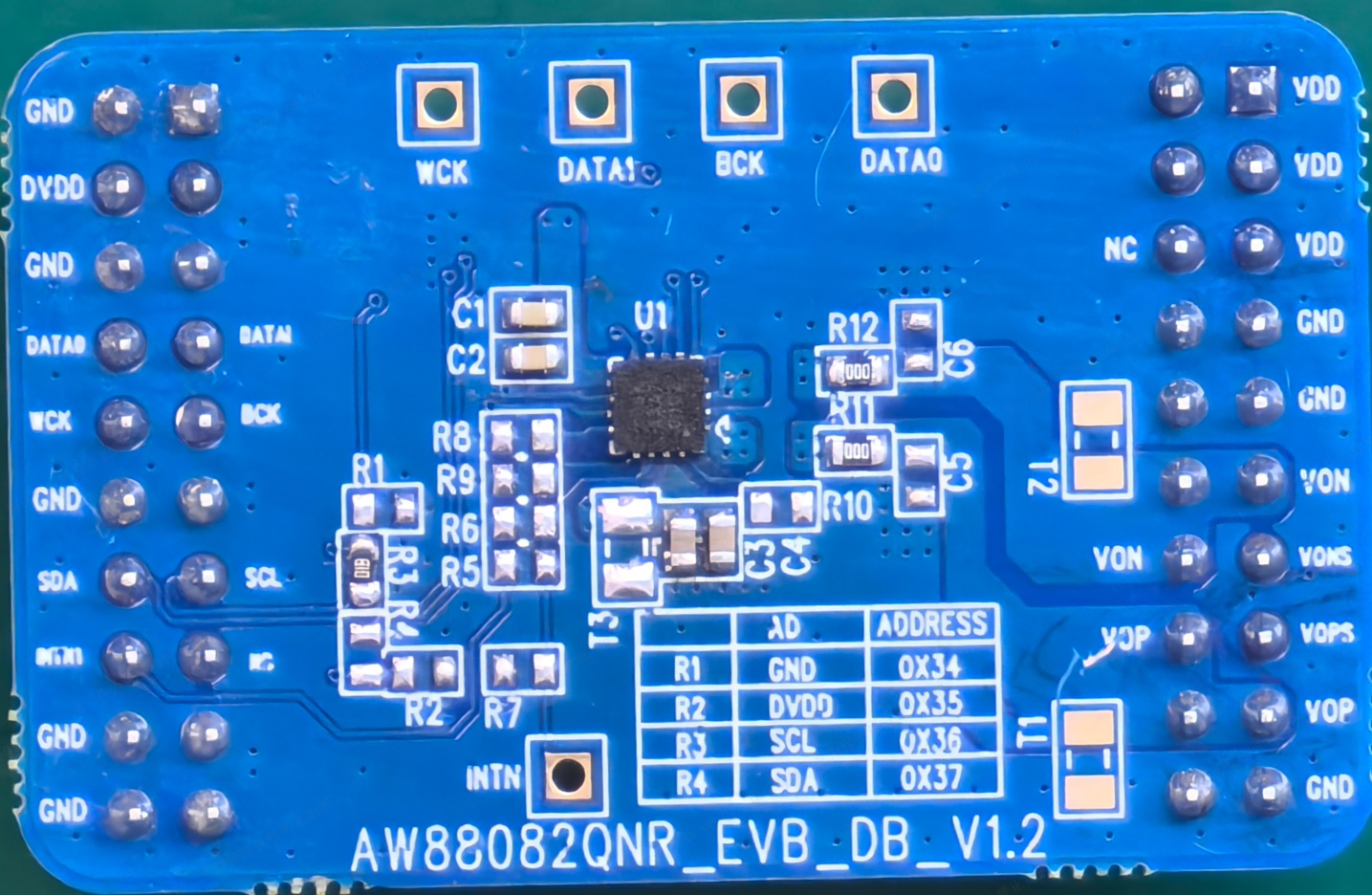 适用于数字音频功放AW88082QNR、AW88082QNR-Q1的EVB评估子板(需要搭配数字母板使用)