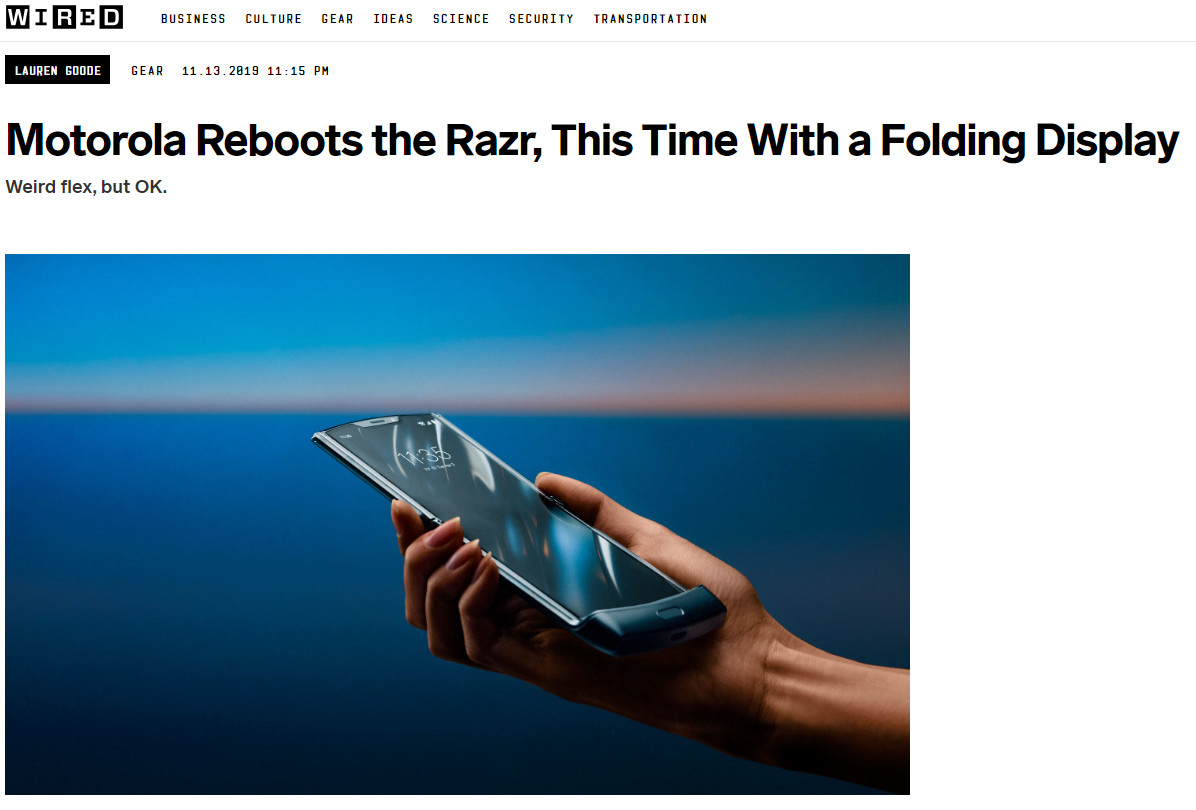 Wired:摩托罗拉重启刀锋,真正折叠屏手机来了!