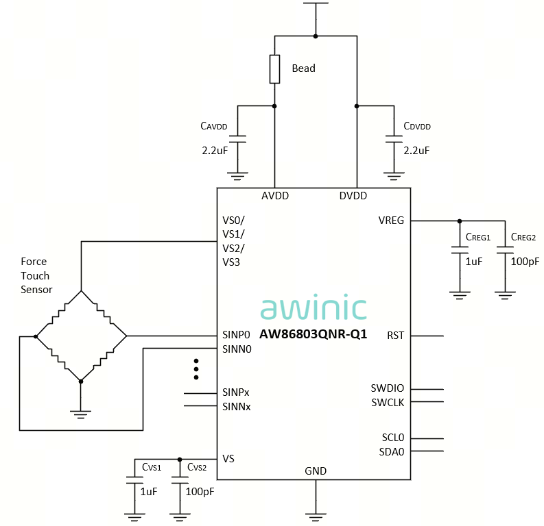 艾为压力感应传感器AW86803QNR-Q1作为一款压感数据采集、处理及控制的SOC芯片,可配合惠斯通电桥器件实现精准的压力检测,适用于多种压力检测应用场景。其工作温度范围在-40℃到105℃之间,低噪声、放大倍数达到2048倍,且带有M0+处理器,可以很好地捕捉微弱的压力信号放大和处理输出准确的按压事件。