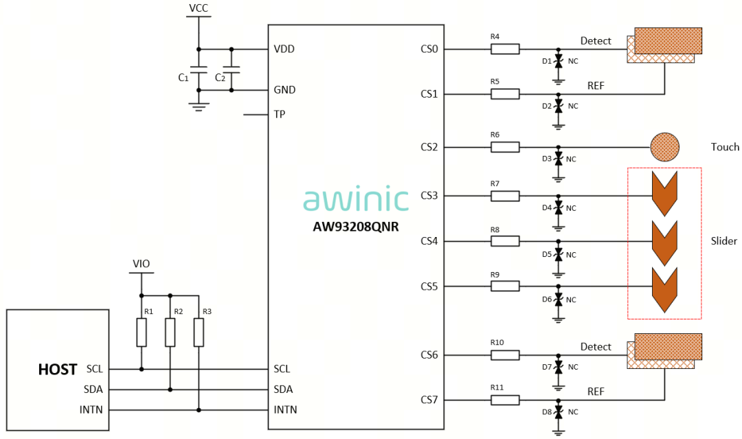 AW93208QNR作为一款利用电容检测原理实现接近与触摸检测的芯片不仅可以实现汽车方向盘上的单击、滑条与压力检测功能,也支持其他应用方向上的2D触摸面板设计。在艾为团队的不懈努力下,新一代更多通道数的艾为芯即将面世,敬请期待!