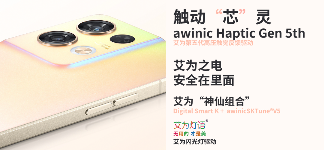 客户持续选择的产品才是好的产品。作为艾为人用心打磨的响亮“名片”,艾为Digital Smart K及神仙算法awinicSKTune除了在OPPO Reno 9精彩亮相外,也为OPPO其他产品带来了出色的音质体验。