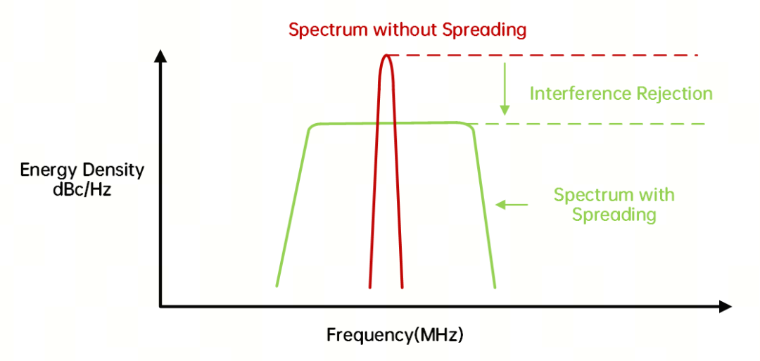 AW21036QPY-Q1通过OSC频率调制的手段将集中在窄频带范围内的能量分散到设定的宽频带范围,达到降低系统电磁辐射峰值的目的。