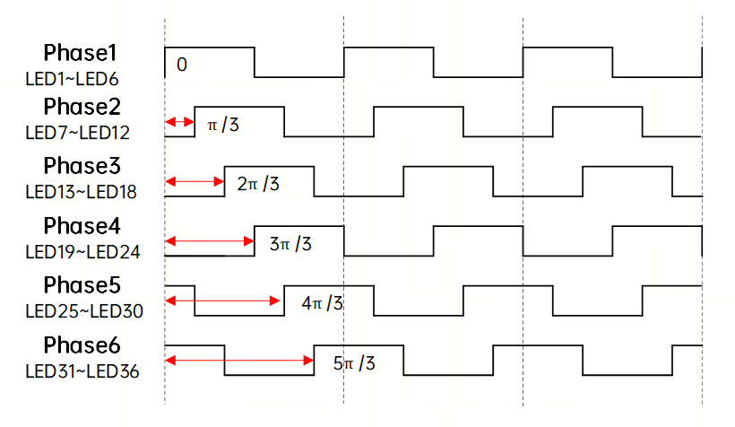 PWM相位延迟 —— 错开LED的开启时间,减小多路LED瞬间开启能量辐射