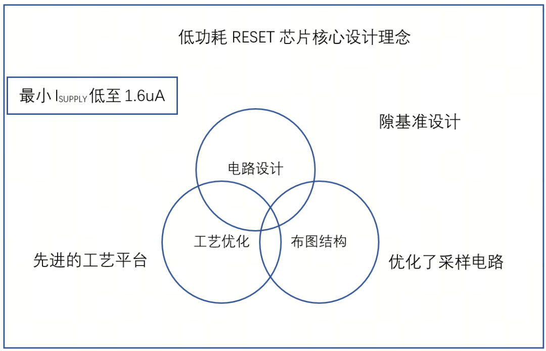 RESET的主要功能是监控电源电压,并在电源电压低于低压阈值时产生复位信号,以防止任何故障;RESET也可用于在主电源故障的情况下,将系统切换至备用电源。基于低功耗的微处理器应用,需要RESET芯片具有极低功耗的特点。AWS70809为减小在高温下的漏电流,采用了薄栅氧晶体管,设计中仅采用了native NMOS,standard NMOS和PMOS。为了实现检测阈值的高精度,AWS70809还内部集成了带隙基准,带隙基准可以在电源电压低至1.6V时也能产生高精度基准电压。为进一步降低功耗,AWS70809内部集成了采样保持电路,通过设置采样保持电路的脉冲占空比,如带隙基准静态正常工作时的功耗为10μA,设置采样保持电路的脉冲占空比为1/100,即可以实现100nA的极低功耗;同时为了不影响基准电压精度,采样保持电路还集成了有源负反馈,即使高温下,保持电容上的电压不会存在漏电,保证了电压精度。