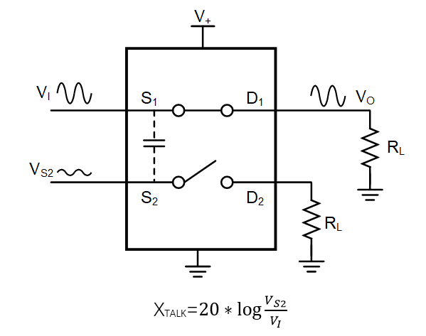 当信号施加在导通通道的输入端时,在关断通道的输入端出现的信号即为串扰。串扰是由通道间或PCB布局引入的寄生电容引起的,信号频率越高,串扰越明显。AW35321QNR在100KHz时的串扰抑制达到-80dB,当AW35321QNR用作音源选择时,高串扰抑制使得音频不会在通道间相互干扰,保证所听即所选。