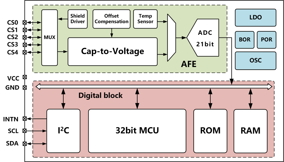 为了给SAR安规事业贡献出艾为芯的一份力量,艾为自主研发了一系列高性能的SAR Sensor,其采用自互容一体电容检测技术,实现了稳定的高灵敏度人体接近检测。