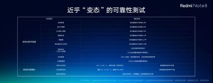品质是“小金刚”系列不变的基因。Redmi Note 8延续了小金刚家族高品质血统,历经严苛的旗舰级可靠性测试。采用更坚固的双面 2.5D 康宁®第五代大猩猩®玻璃,并增加了1.5m小角度跌落试验,进一步增强机身强度。整机纳米防泼溅镀层和机身四角保护设计可以帮你从容应对日常生活意外,质量杠杠的。
