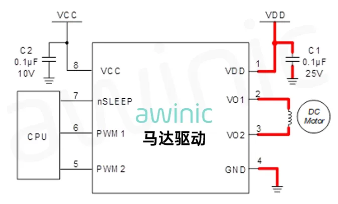 艾为直流马达驱动提供集成化方案、最大1.9A驱动电流,完美解决拖布和滚刷升/降的应用需求。