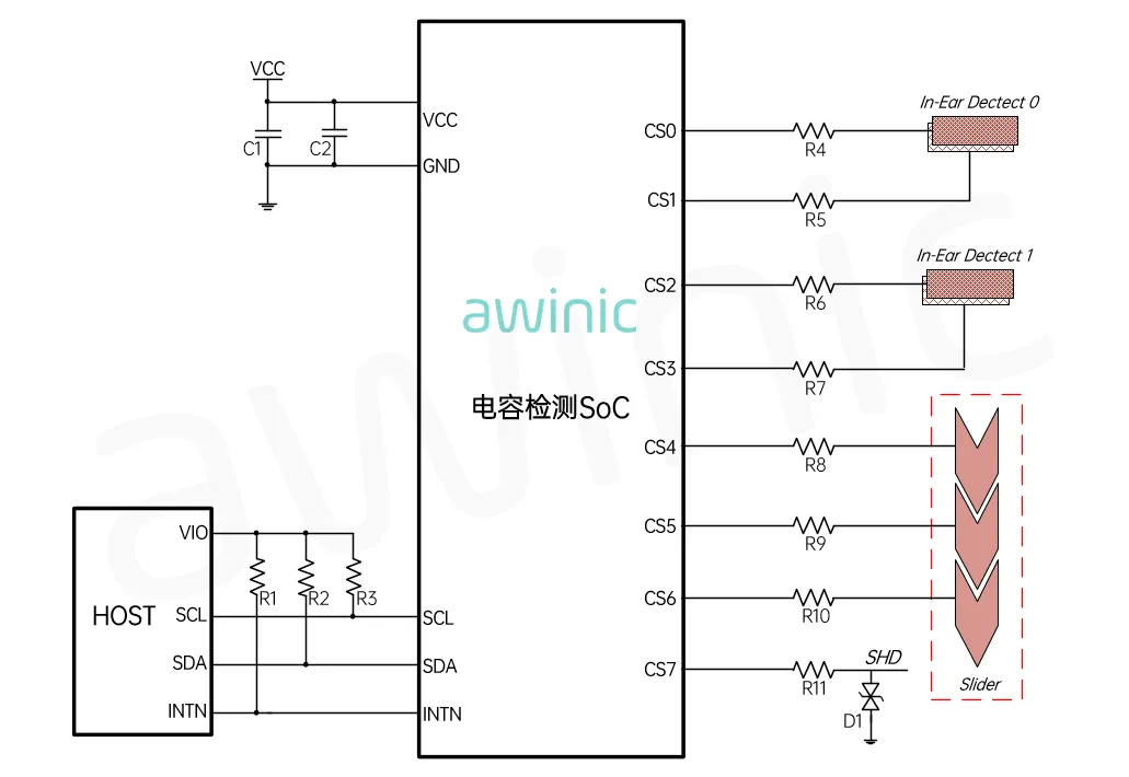 艾为电子的电容检测SoC系列产品集成艾为“大禹”防水防汗算法、支持手势识别,助力云鲸系列产品实现家人友好的基站设计。