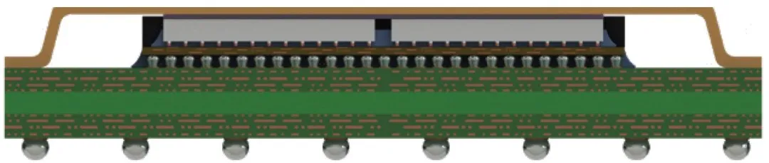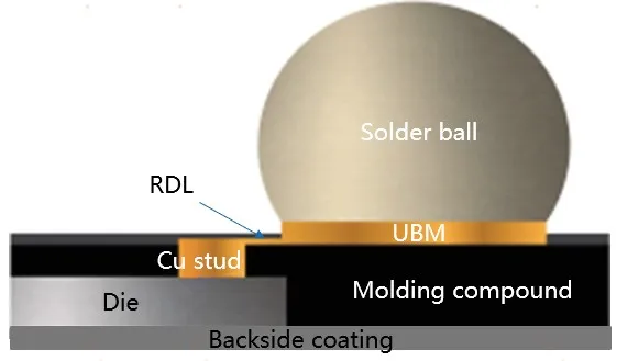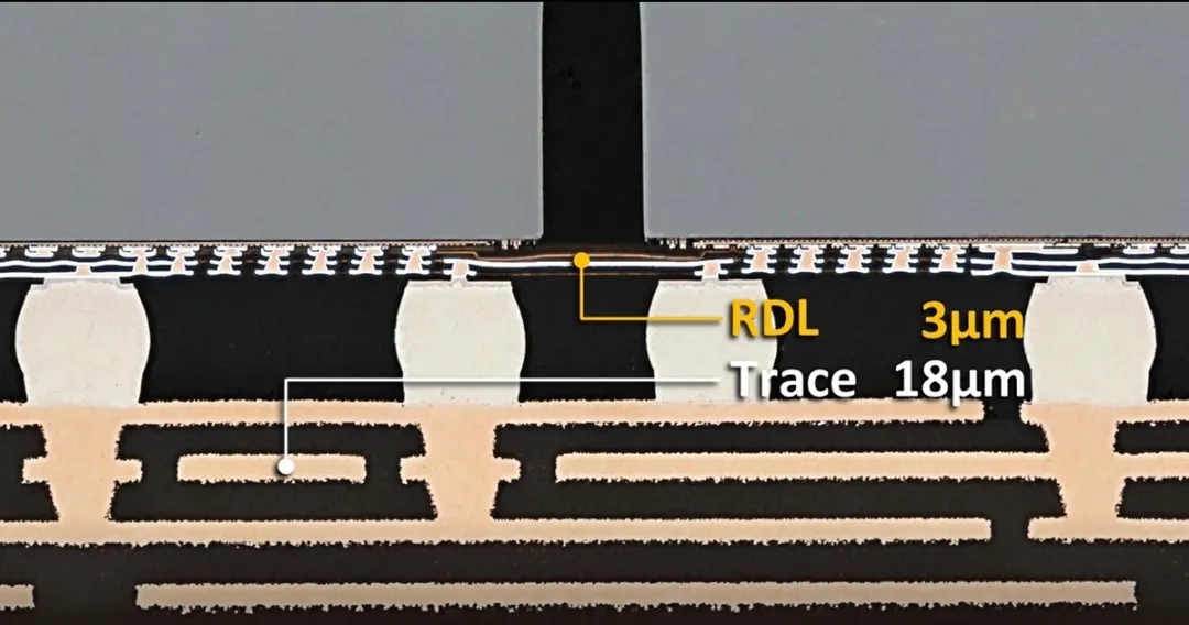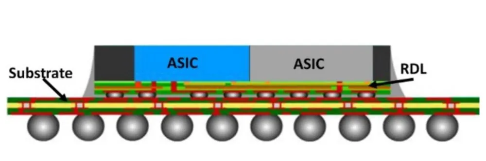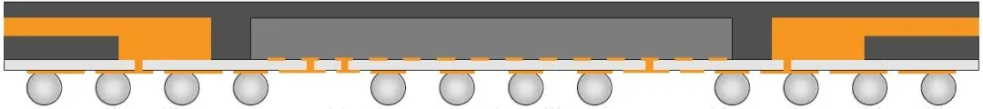 (2)芯片通过倒装方式直接与RDL连接,消除了芯片偏移问题;