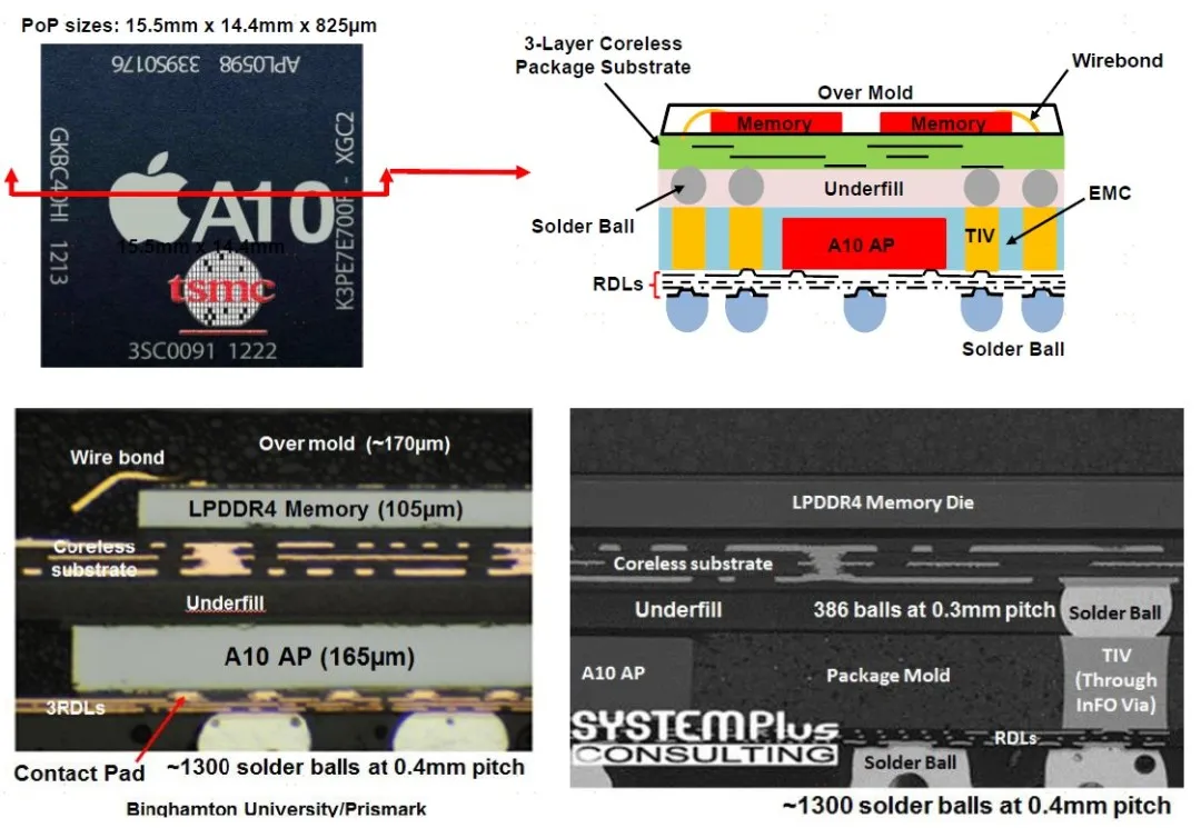 FOWLP封装2009年量产,但彼时只应用于手机基带芯片。真正转折点是2016年,iPhone7系列A10处理器采用TSMC基于FOWLP开发的集成扇出型芯片堆叠(Integrated Fan-Out Package on Package, InFO-PoP)封装,此后扇出型(Fan-Out)封装成为热点,各大手机OEM厂商争相追求HDFO(High-Density Fan-Out)封装。