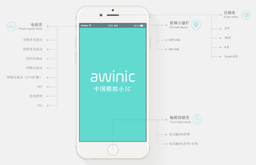 艾为一直专注于模拟及数模混合产品的研发,秉承“客户需求是艾为存在的唯一理由”的企业文化,聚焦在手机、可穿戴、智能音箱、IoT等消费电子领域,同时也在车载安防领域有所斩获,在国内手机模拟IC市场覆盖率名列前茅!