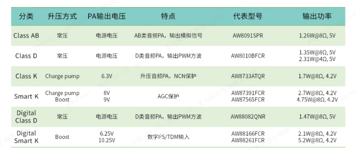 表1 艾为音频功放产品选型表