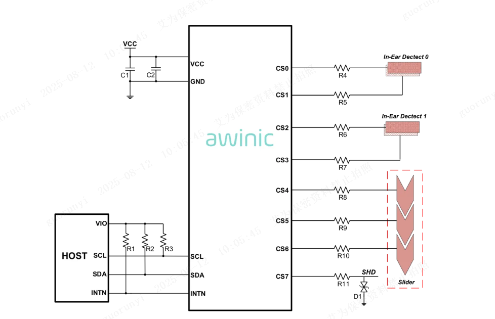 3~12通道触摸按键,可实现佩戴检测、单击、双击、长按、滑动等识别