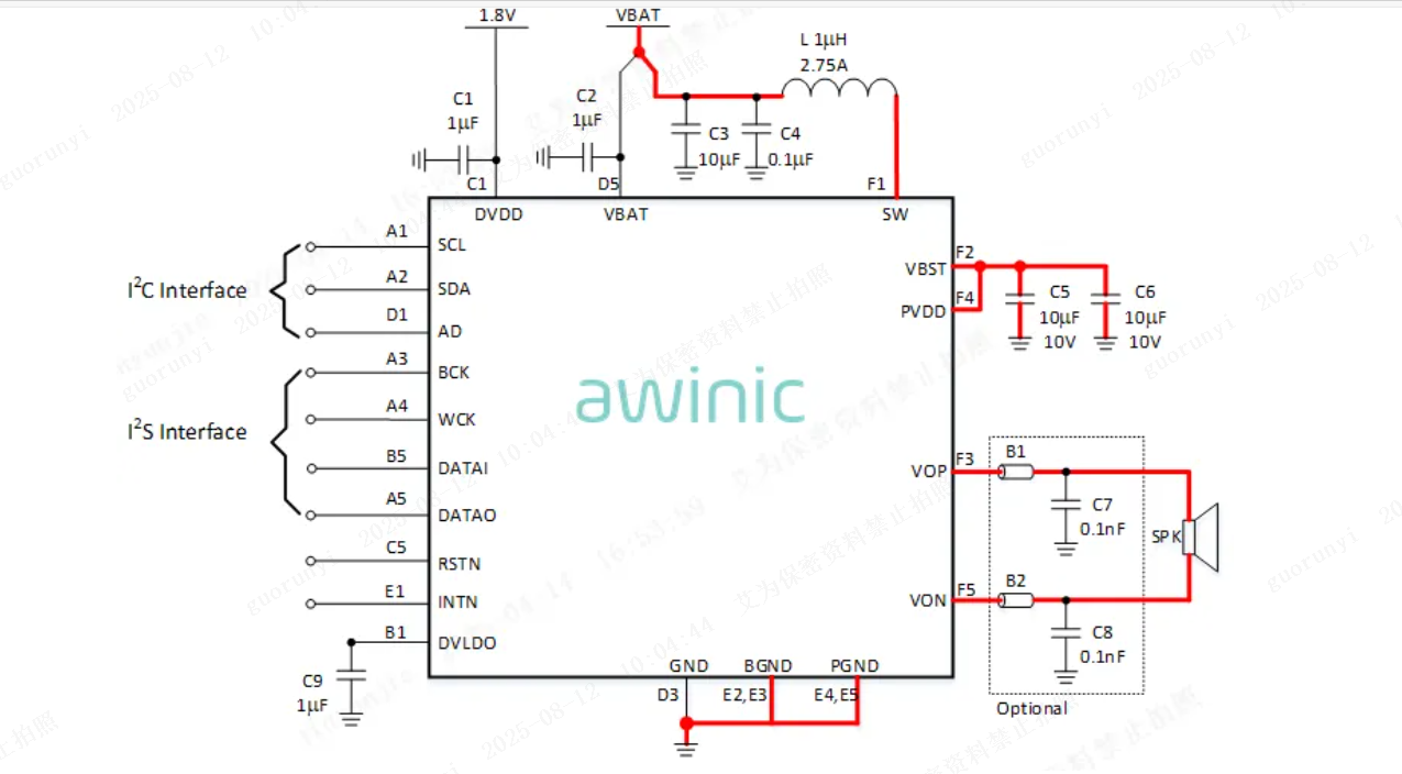 数字接口:I²C/TDM interface, Supports 1/2/4/6/8 slots TDM,Input Sample Rates from 8kHz to 96kHz, Data Width: 16、20、24、32Bits,Ultrasonic support via TDM/I2S running at 96kHz
