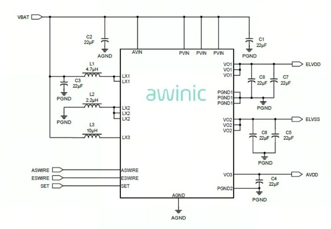 Google Pixel 9a系列手机应用了艾为OLED Power PMIC为屏幕提供稳定供电。该产品专为AMOLED(有源矩阵有机发光二极管)显示面板设计。集成了两个高性能升压转换器:VO1(正电压ELVDD)和VO3(AVDD),以及一个反向降压-升压转换器VO2(负电压ELVSS), 这些转换器具备优异的线路和负载瞬态响应。VO3可通过ASWIRE进行编程,VO1和VO2可通过ESWIRE进行编程。所有接口都可以实现对应转换器的开/关控制。