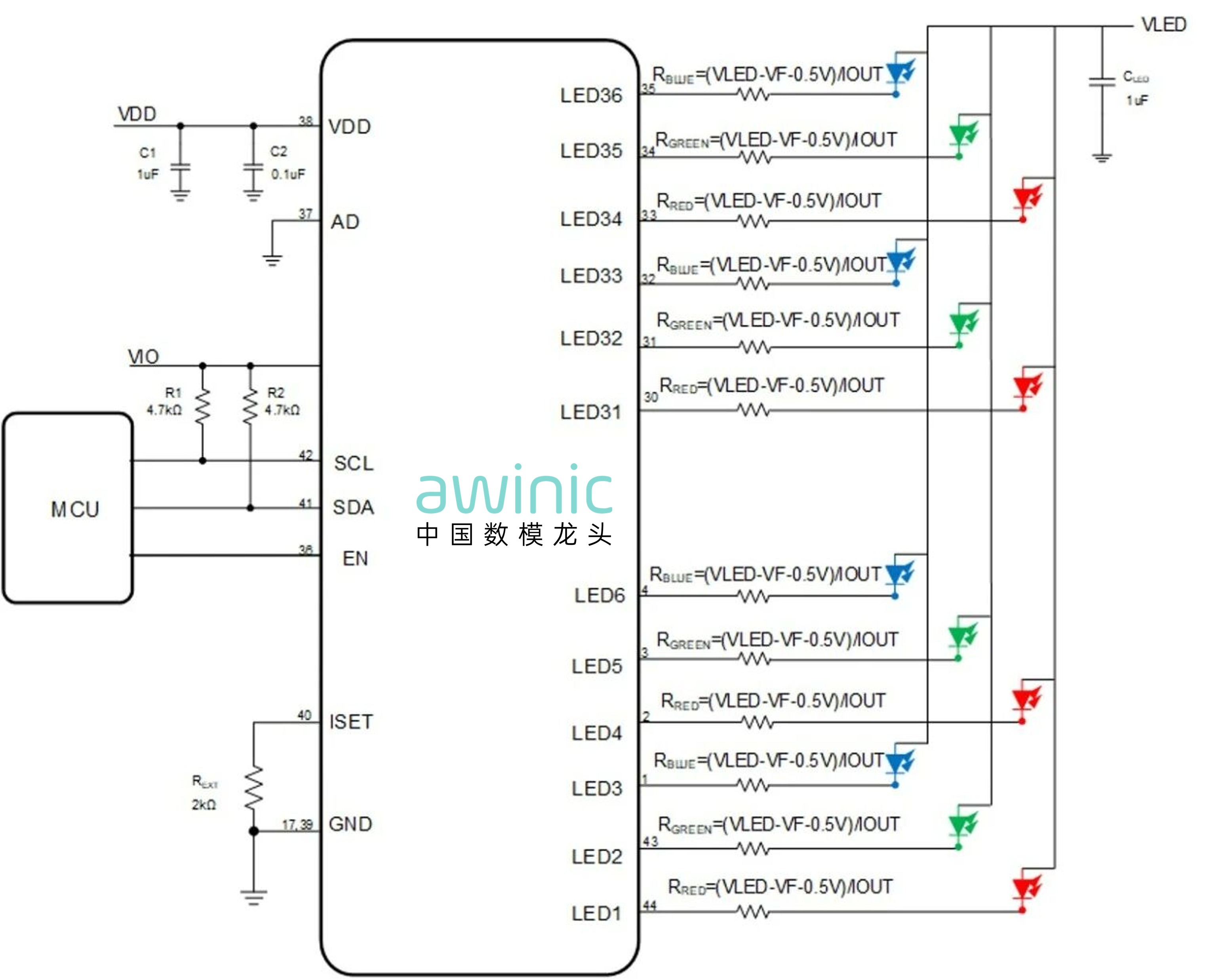 可驱动36颗LED/12颗RGB,单路1680万级电流