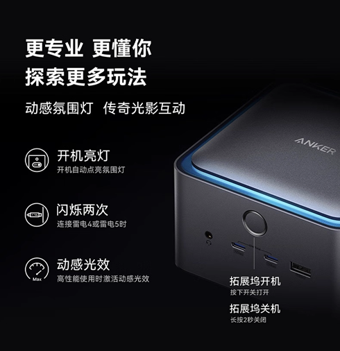 安克Prime 14合1雷电5桌面拓展坞搭配艾为高性能36通道呼吸灯驱动,实现拓展坞不同工作模式下的动感灯效,科技感满满。