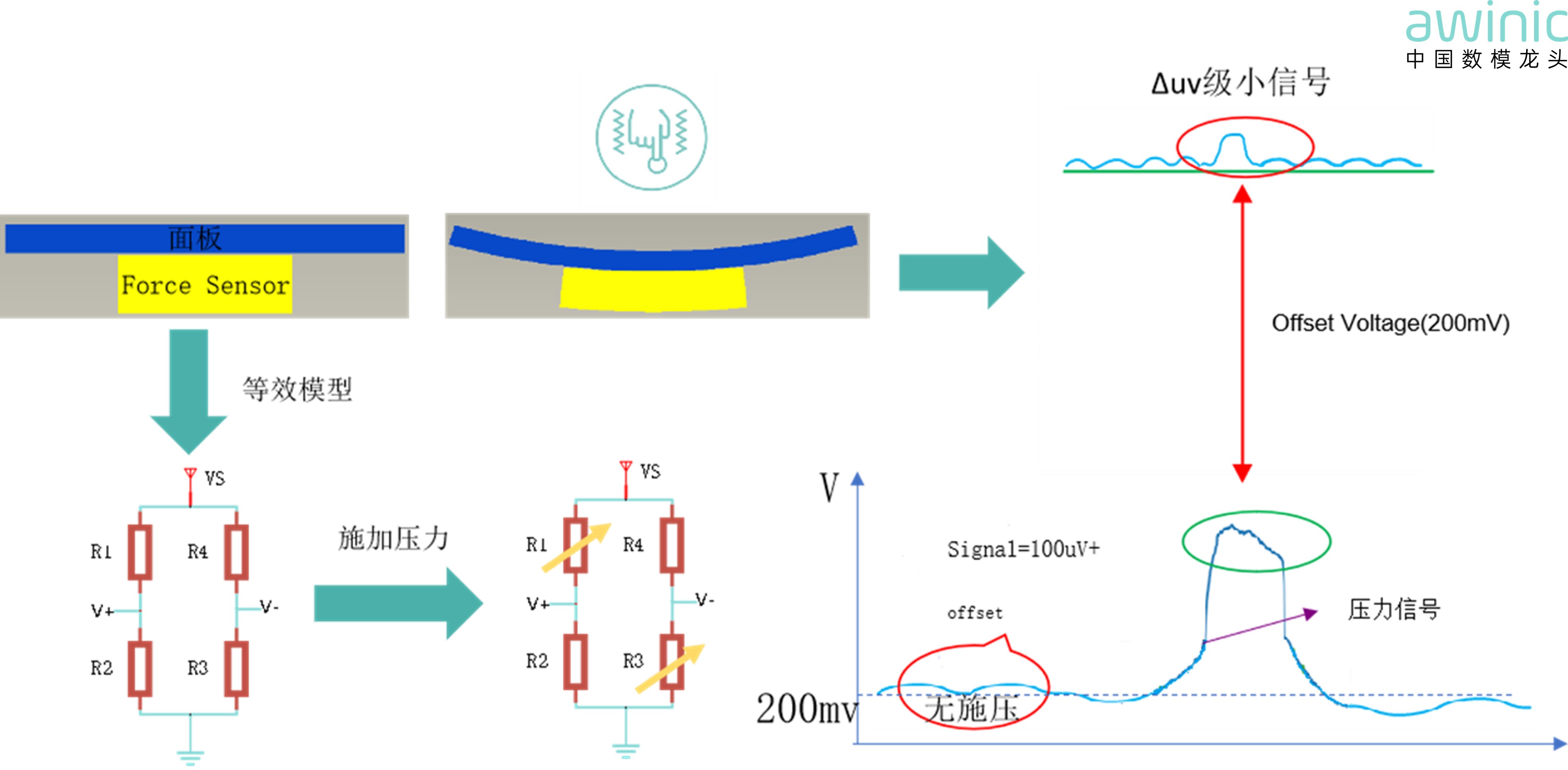 【工作原理】通过高灵敏度应变材料,结合惠斯通电桥,将微米级形变转化为uV至mV级的信号;