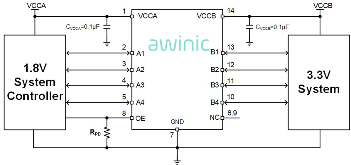 图2 艾为电平转换芯片典型应用图