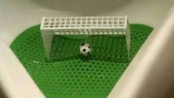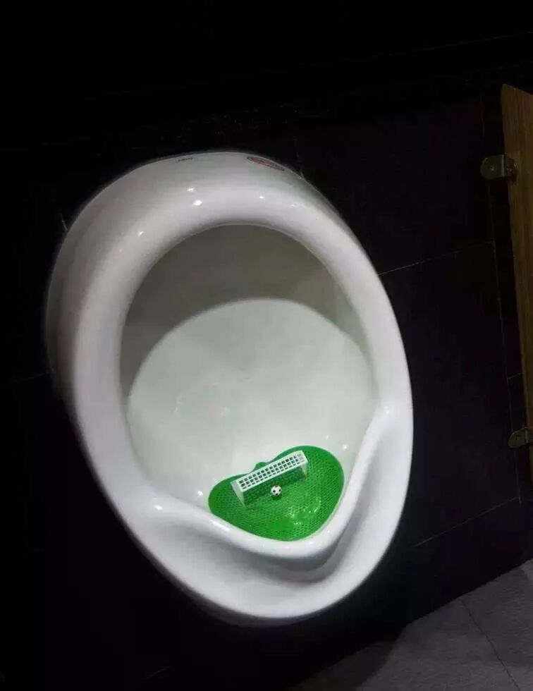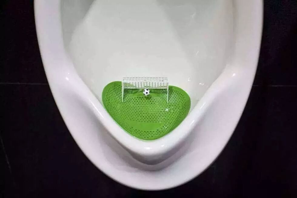 话说,这个想法是来自于一位爱动脑筋的公厕保洁员,他由世界杯联想到了这个设计。这个设计有效地控制了男士如厕时的尿液溅出问题,让厕所更好清理,这个简单又幽默的创意解决了大问题。