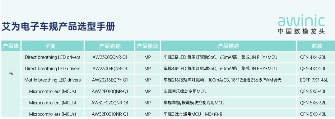目前,艾为电子的车载灯光解决方案已广泛应用于比亚迪、鸿蒙智行、小米等国内主流车企及头部Tier 1供应商,多款核心产品成功入编《2025中国汽车芯片供给手册》。未来,艾为电子将持续深耕汽车电子领域,打造更具竞争力的“中国芯”解决方案,推动智能车灯行业迈入情感化、智能化全新发展阶段,助力中国汽车产业在全球智能化浪潮中实现弯道超车。