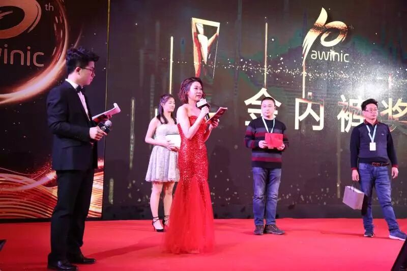 艾为电子CEO孙洪军在会上致辞,回顾了创立艾为十年来的心路历程,并对所有艾为人在严峻市场环境下表现出来的奋力拼搏的精神、取得的骄人业绩,给予充分肯定,并勉励大家在新的一年里再接再厉,再创辉煌! 本次颁奖盛典共颁布了“金笔奖”、“金服奖”、“金伯乐”、“金鼎奖”、“金弩奖”“金靴奖”、“金马奖”、“荣耀之芯”以及“荣耀之星”等共计15个奖项,表彰2017年度为公司发展作出突出贡献的先进个人和团队。 每位获奖者都获得了刻有自己姓名的“艾为十年”奖牌一枚,内置艾为Smart K等四颗艾为芯、印有艾为十周年LOGO的定制限量版红米5手机一部以及奖金若干。 “艾为十年 火炎焱燚”年度晚宴再放大招!不仅在签到现场设置了各类创意布景,晚宴所有签到礼品和抽奖礼品都是为艾为小伙伴们精心准备的awinic inside 产品。 包括华为、小米、OPPO、MOTO、美图等手机和B&W音响、口袋无人机、海尔互联网冰箱、JBL 音箱、智能后视镜、儿童故事机、电动牙刷、智能摄像头等在内的,适用于不同人群、不同场合的awinic inside 产品,让现场的所有人都能感受到“艾为芯”无处不在的力量。 全程三个多小时的演出包含各部门、各地区的艾为人精心准备的歌舞、相声、小品等精彩节目,让全场喝彩不息、欢笑不断,一起来看看现场的精彩瞬间吧! “艾为十年”节目单 节目1----- 歌舞《冬天里的一把火》 节目2----- 踢踏舞《爱上指挥官》 节目3----- 小品《奇葩家庭》 节目4----- 相声《英雄就义》 节目5----- 独唱《如果我们不曾相遇》 节目6----- 吉他弹唱《同手同脚(艾为版)》 节目7----- 合唱《年轻的战场》 节目8----- 小品《面试现场》 节目9----- 小品《出差风波》 节目10----- 小品《爱情保险》 ▲晚宴在艾为人和艾为家属们颇具创意的logo拼贴签到完成后正式开始 ▲开场曲《冬天里的一把火》将现场气氛带向高潮 ▲各部门领导共同流沙并举杯共同开启“艾为十周年” ▲跨部门踢踏舞表演《爱上指挥官》 ▲由研发小伙伴带来的穿越小品《奇葩家庭》 ▲版图同学带来的爆笑双簧相声《英雄就义》 ▲歌曲《如果我们不曾相遇》带领全场重返十年前艾为初创时期 ▲改编歌曲《同手同脚(艾为版)》用吉他弹唱带我们经历艾为人曾经经历过的“阵痛与蜕变” ▲合唱《年轻的战场》“新老”艾为人为梦想同台献唱 ▲小品《面试现场》重现艾为HR小姐姐曾经遇到过的爆笑面试经历 ▲小品《出差风波》还原艾为FAE小伙伴曾经连续几月出差支持客户的经历 ▲感恩颁奖环节为多名艾为小伙伴的突出表现颁奖 ▲市场部小品《爱情保险》充分展现了市场部小伙伴们的口才天赋 ▲晚会特设的“感恩家属”环节,邀请所有家属上台参与活动并送上新年礼物一份,获胜家庭获得艾为特别准备的“迪士尼家庭套票”一份,以感谢所有艾为家属对艾为的支持和关注。