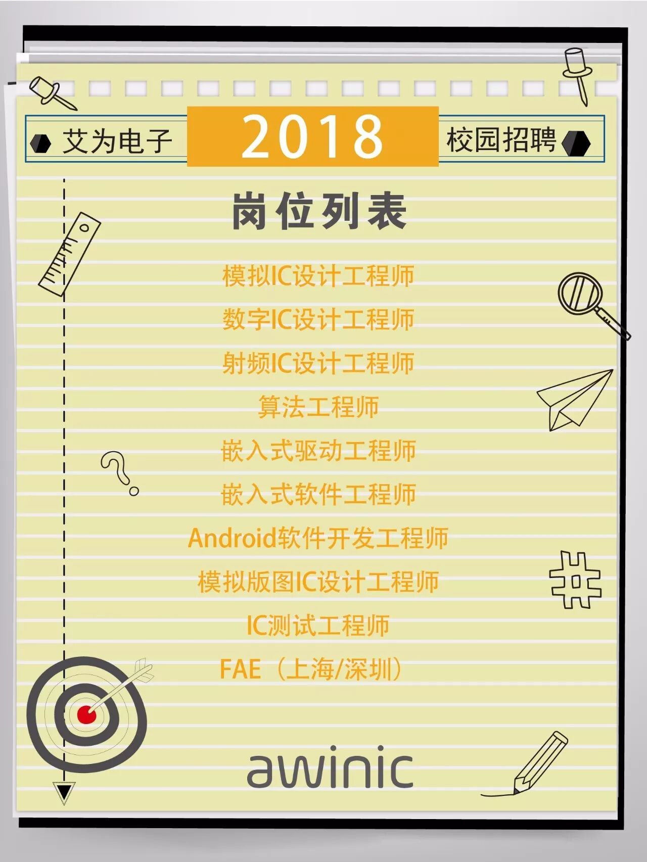其中有几则让我们印象十分深刻,小艾认真学习了领导的重要讲话,并学以致用,比如......小艾最牵挂的还是咱们应届毕业生!没人会直接给你荣华富贵,但是我们给你机会和平台! 只要你有胆量、有眼光,艾为2018校招季,成功一定属于你! 有平台的地方,成功看得见! (校招岗位列表见文末) @呀哆: 从2016年11月21日来艾为报道的第一天起,到现在后知后觉已经过了这么久,这段日子是全新从来没有体验过的一段生活,从集体宿舍有商有量到一个人面对各种问题,从无拘无束的校园生活到需要时刻警醒自己的职场生涯,从十六年的学生身份到自给自足的小小上班族。 艾为给我的感觉更像是一个大家庭,好像和工作之前别人给我描述的冷冰冰的职场不太一样,在这里,第一次有自己的办公桌,第一次有工作牌,第一次有一群可爱的同事,第一次参加公司年会,第一次参与项目,第一次幸运的赶上艾为九周年庆。201天每一天都是不一样的,每一天都是成长的。 @空谷幽兰: 我是一名技术服务工程师,进入艾为工作也有两个多月了。短短的时间里,我收获了满满的感动与正能量,深深地被艾为的企业文化所感染。“客户需求是艾为存在的唯一理由,高素质的团队是艾为的最大财富”,艾为的产品遍布整个手机行业,awinic inside已成为标志。 艾为之家也在逐渐壮大,公司上下一体,团结一致服务客户。短短两个多月,我同大家一起度过了欢快的儿童节,见证了艾为九周岁生日嗨趴~朋友圈发出的九周年庆祝照片,朋友们评论最多的就是“好有爱的公司!”我因此而感到自豪!能让朋友以这种方式了解艾为也算是一种独特的艾为情怀。我为我能在如此充满爱的公司工作而感到幸福! @三极管: 依稀记得09年时认识了艾为,当时就觉得艾为是家发展迅速、很有创新爆发力的科技公司,如今借助国内半导体业良好的发展氛围和国产手机大爆发、冲向世界的春风,艾为业绩也是突飞猛进、节节攀升,在声、光、电领域占据了领先者的地位,成为国内IC业的一颗耀眼的新星。 艾为人做事很严谨,精细化管理,明白细节决定成败,精细作业出精品。新产品出来时,内部测试评估项多而全面,覆盖芯片所有的性能指标和可靠性测试,以保证后续量产版芯片的高品质,让设计工程师亲自测试,以便设计师更加了解芯片的工作机理和对性能参数的深入理解,培养直观感。杜哥常常教导我们做每个电路不仅要知其然还要知其所以然,不仅会仿真设计还要会手算,深刻理解电路,深入明白其优缺点,每做完一个电路模块就要吃透它,以后设计电路时能信手拈来。很喜欢公司讨论分析问题的氛围,每次讨论会,都是智慧的碰撞,知识精粹的总结,大家都畅所欲言,从不同的角度进行分析,有些疑难点和细节,杜哥、辉哥或涛哥的一些点拨,会让我们找到一些新的方向。 长按下方二维码 艾为HR小姐姐为你打Call 一对一传授校招应聘技巧 验证好友时请备注 你的名字+学校+专业+毕业时间 点击下方“阅读原文”立即投递简历