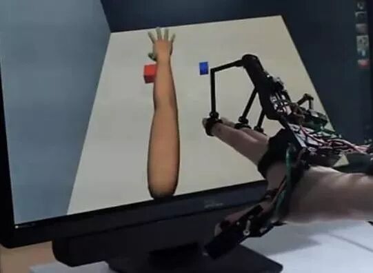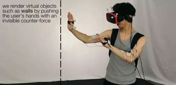 在丹佛市举行的CHI 17会议上,德国波兹坦市Hasso-Plattner研究院的一队研究人员展示了一种可以模拟“推墙”或“提举重物”等过程的触觉反馈的系统。