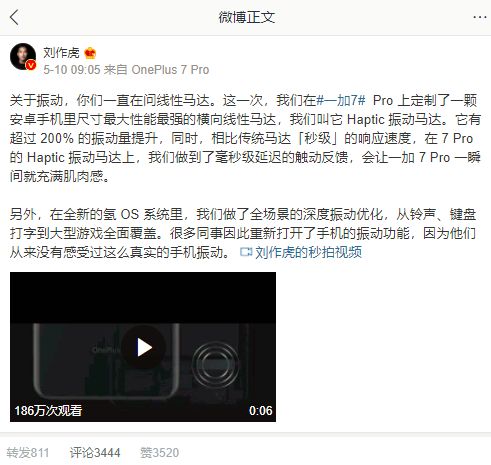 线性马达是普通手机转子马达的升级版,主要分为两种,一种是纵向线性马达,一种是横向线性马达,虽然都是线性马达,但效果却并不相同。纵向线性马达相比普通的转子马达振动效果提升很有限。而横向线性马达则带来了飞跃般的振动提升,目前只有苹果、魅族等少数几个厂商在使用,一加7 Pro的加入或将成为高端手机升级横向线性马达的导火索。