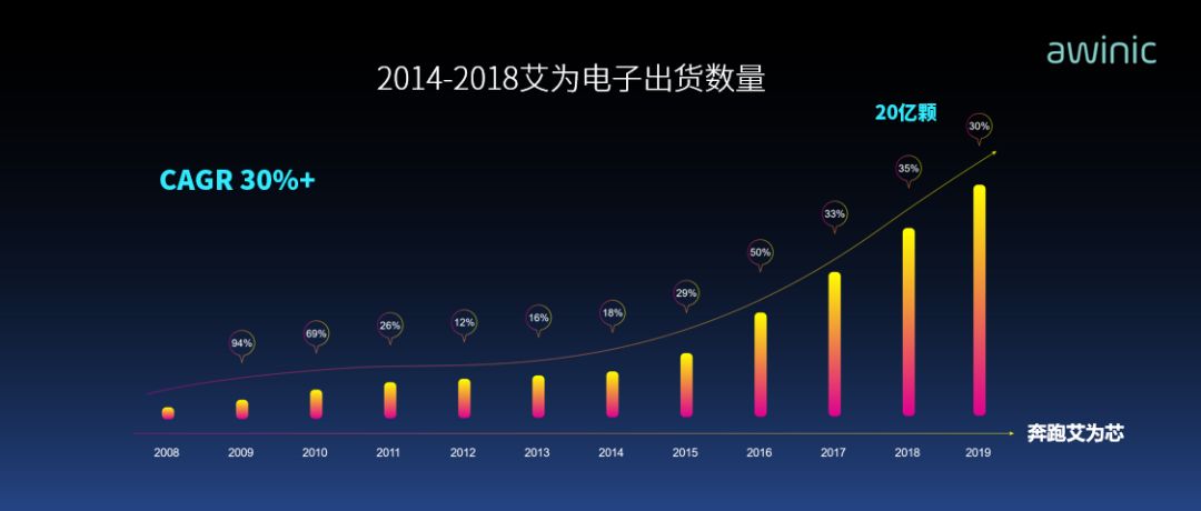 艾为电子成立于 2008年,经过十一年的成长,已经成为了国内领先的模拟IC设计公司,基本上每款国产手机都使用了"艾为芯"。“针尖起舞梦·奔跑艾为芯”,艾为电子不断在针尖大小的地方实现超越,并在国内半导体产业中已经获得了不可忽视的行业影响力,同时在国产模拟芯片替代进程中,艾为电子也逐渐成为国产模拟芯片的应用担当,艾为电子也随之进入新的发展阶段。