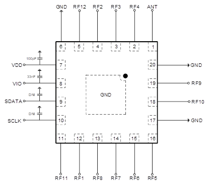 The AW13512 is perfectly compatible with MIPI RFFE V2.1 control interface. It is provided in a compact 2.5mm x 2.5mm, 20-pin QFN package.