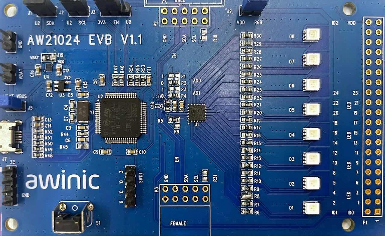 AW20198 is an 18x11 matrix LED driver programmed via an I2C compatible interface. Each channel has individual 8-bit DC current setting for color-mixing and 8-bit PWM current setting for brightness control. The global current of each channel is configured via register GCCR and external resistor REXT.