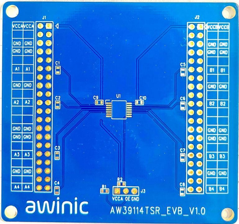 AW39114 is a 4-bit high-performance voltage-level translator without direction control signal, which is a non-inverting converter and can be used to convert digital signal with mixed-voltage systems. It needs two separate power supply rails, with the A ports tracks the VCCA ranging from 1.1V to 3.6 V, and the B ports tracks the VCCB ranging from 1.65 V to 5.5 V. This makes the chip has capabilities of support both lower and higher logic signal levels translation between any of the 1.2V, 1.8 V, 2.5 V, 3.3 V, and 5 V voltage nodes.