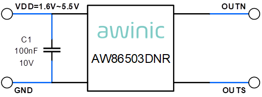 AW86503DNR is a high-sensitivity micropower unipolar Hall effect switch IC with internal pull up and pull down capability. AW86503DNR uses a hibernating clocking system to reduce power consumption, which the total power consumption in normal operation is typically 0.45A with a 1.8V power source. Mainly designed for portable devices such as laptop computer, smartphone and bluetooth headset etc. The supply range of AW86503DNR is 1.6V to 5.5V to support portable equipment. To minimize PCB space, the AW86503DNR has ultra small SON package: DFN 1.4mm×1.1mm×0.37mm-4L.