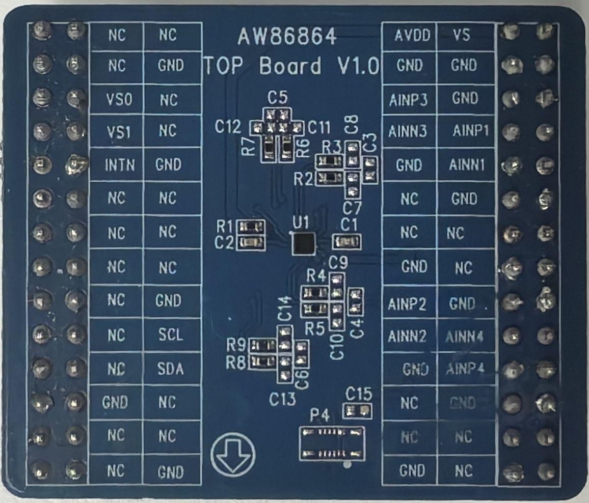AW86861 is a chip of force touch AFE, which has the functions of pressure sensing signal acquisition, amplification and processing. It integrated 1 I²C module, 1 system control module, 1 power management module and 1 AFE module (Include 1 analog input differential channel and MUX, level 2 PGA, 11-bit offset calibration DAC, 14bit ADC and pressing algorithm).