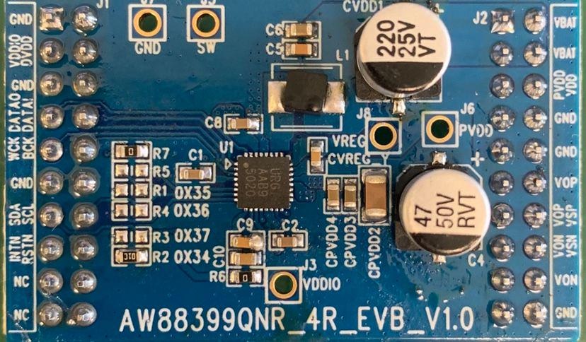 The AW88399QNR offers Short Circuit Protection, Over-Temperature Protection, Under-Voltage Protection and Over-Voltage Protection to protect the device.