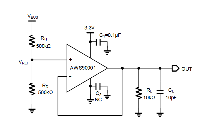 The AWS90001 is a high precision, micro-power, low-voltage (1.8V to 5.5V) operational amplifier with rail-to-rail input and output swing capabilities, which makes it ideal to general-purpose applications. This op amp features very good AC performance with a gain-bandwidth product of 1MHz, slew rate of 2V/μs and low input voltage noise of 5.2μVpp, while drawing 66μA (typical) of quiescent current. It has an input common-mode voltage range that extends to each supply rail, and its outputs swing to within 60mV of the supply rails with a 2kΩ load.