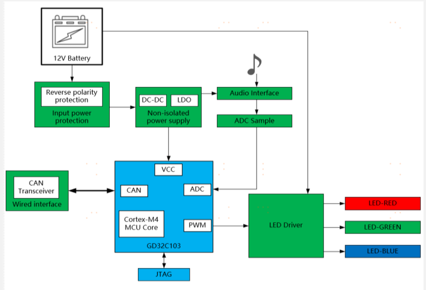 2) We recommend using AW32F010QNR-Q1 for the music processing part of the dynamic atmosphere light, and AW21036 for the light drive part