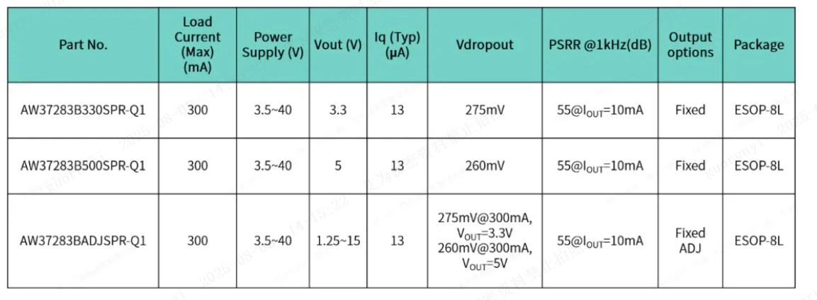 In dynamic scenarios such as camera module switching between standby/working modes, optical image stabilization activation, and autofocus driving, the load current will have rapid step changes. AW37012DXXXFOR achieves excellent transient response characteristics through optimized loop design, effectively suppressing voltage fluctuations that interfere with the image sensor, and avoiding abnormalities such as image distortion and data packet loss caused by unstable power supply.