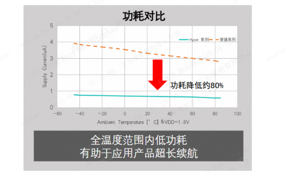 The first member of the "Hyper-Hall" series adopts a small FCDFN package size (0.8mm×0.8mm). Compared with products with ordinary WBDFN package size (1.1mm×1.4mm), the product's mounting area is reduced to 40% of the original (from 1.54mm² to 0.64mm²), optimizing more space for high-density PCB layouts and helping customers achieve more compact circuit designs and larger battery space. In addition, through the breakthrough of ultra-low power consumption architecture, the "Hyper-Hall" series has an operating power consumption of less than 0.8uA, which is 20% of the power consumption of traditional products (reduced from 4μA to 0.8μA), achieving efficient operation and contributing to the ultra-long battery life of applied products.