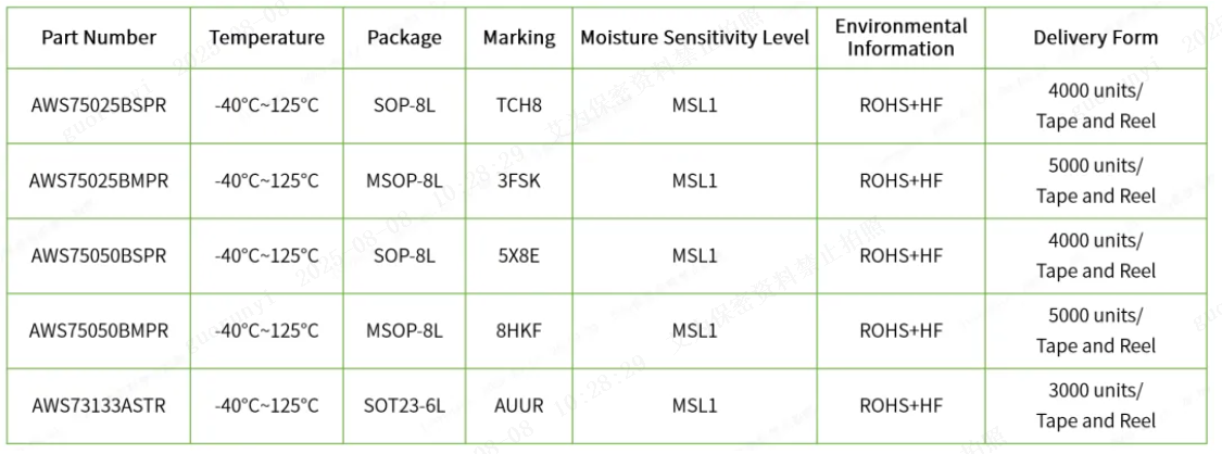 The AWS73431 has an output impedance of only 0.2Ω and a response time as short as microseconds, making it particularly suitable for transient scenarios such as switching power supplies. The quiescent current is as low as 0.2mA, contributing to low-power design.
