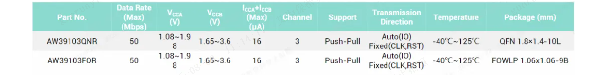 ■AW39103FOR: SIM card level conversion, supporting 1.2V