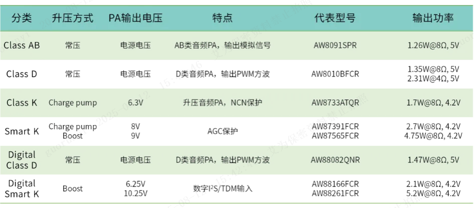 Table 1: Awinic Audio Power Amplifier Product Selection Table