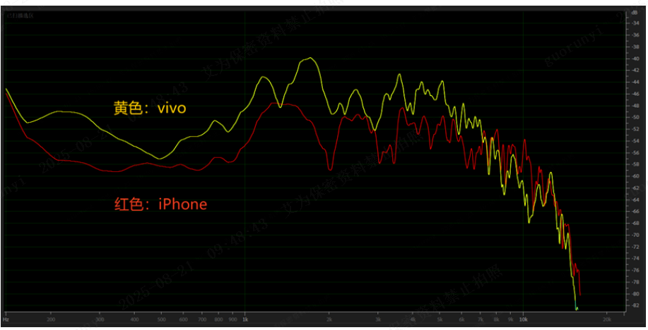 Figure 3: Comparison of External Frequency Response Curves Between vivo Y300 and iPhone 15 Pro Max – Mid-to-low frequency loudness increased by up to 8dB