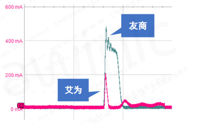 Figure 6: Comparison of Startup Inrush Current Between Awinic and Competitors