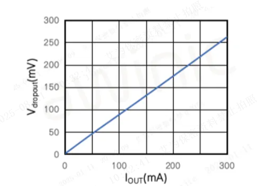 275mV (IOUT = 300mA, VOUT = 3.3V)