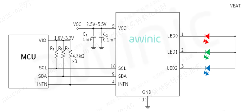 Figure 7: Application Schematic of Awinic’s 3-Channel RGB LED Driver