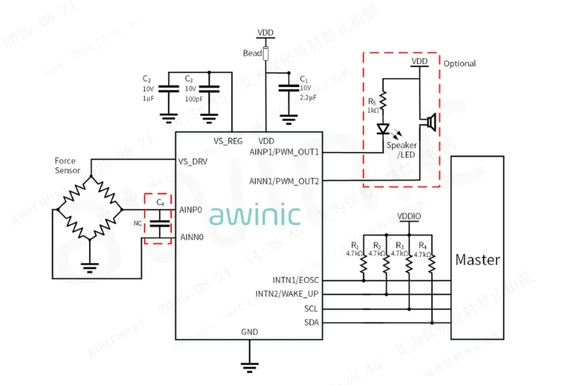 Figure 5: Application Schematic of Awinic’s Force Sensor AFE