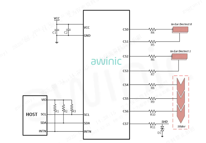 Figure 4: Application Schematic of Awinic’s 8-Channel CAP Sensor